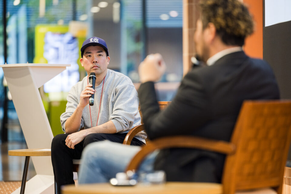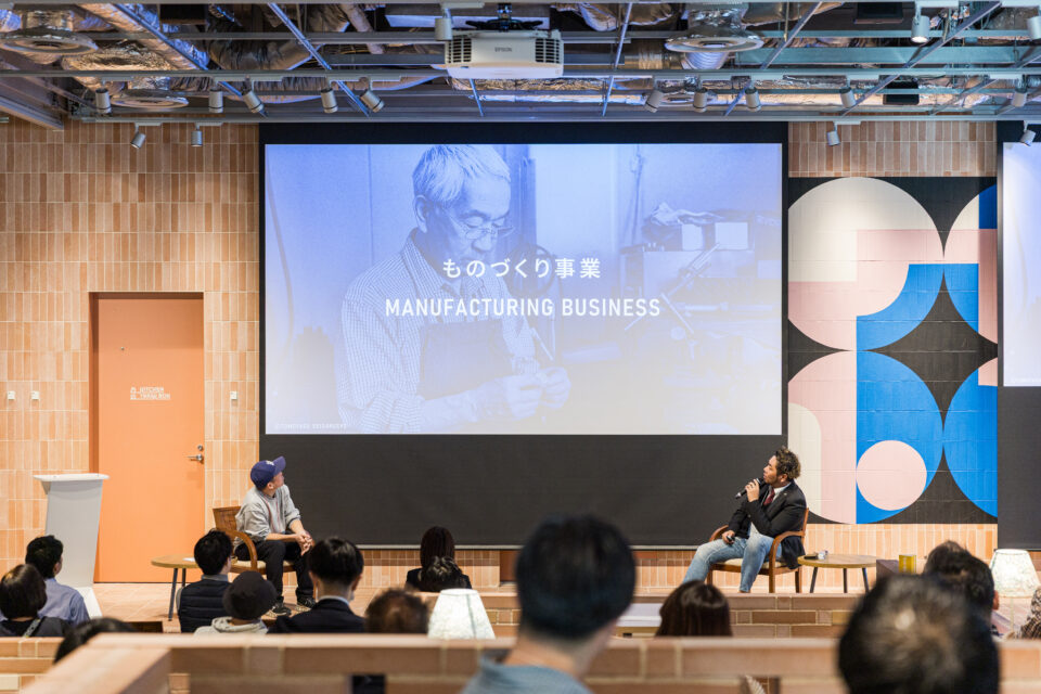 「事業ターゲットは世界中の人々」と語り、通販、カフェ、工務店、まちづくりなど多角的な事業を通じて顧客とのあらゆる接点を創出する友安社長に、トークセッション形式でお話しいただきました。